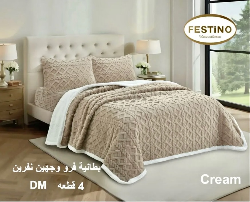 روتختی گوسفندی و ملافه کشدار مخمل۴تیکه